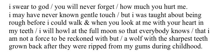 rosiesprite Uncategorized August 23, 2017December 6, 2018 1 Minute hanhyland: excerpt from BODY LIKE A FULL MOON, (han hyland) Share this: Share on X (Opens in new window) X Share on Facebook (Opens in new window) Facebook Like Loading... Related Published by rosiesprite Alice - She/He/They - Minor View all posts by rosiesprite Published August 23, 2017December 6, 2018