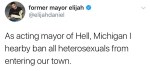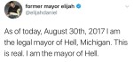 Comedian and vlogger Elijah Daniel became mayor of Hell, Michigan, proceeded to ban all heterosexuals, and then was impeached. This singlehandedly saved 2017