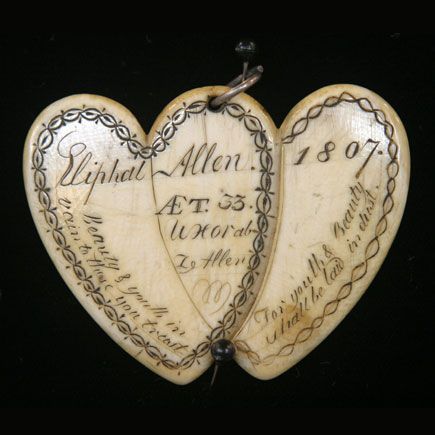 Scrimshaw double heart mourning pendant, 1807