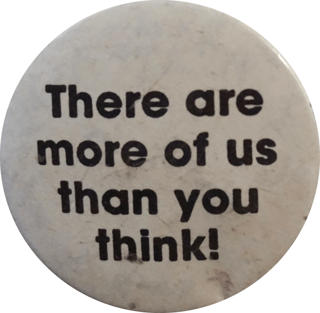 rosiesprite Uncategorized October 9, 2018December 5, 2018 1 Minute lesbianherstorian: ”there are more of us than you think!” a pride button from genderpress, c. 1990′s Share this: Share on X (Opens in new window) X Share on Facebook (Opens in new window) Facebook Like Loading... Related Published by rosiesprite Alice - She/He/They - Minor View all posts by rosiesprite Published October 9, 2018December 5, 2018