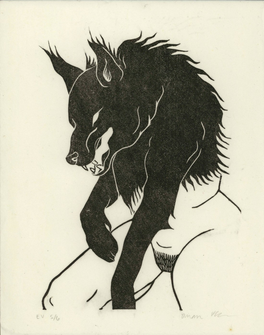 Ari Freitag (American, b. 1990, USA, based Portland, OR, USA) – Print made for Dark Matter Press’s 2018 Vices Print Exchange. Linocuts