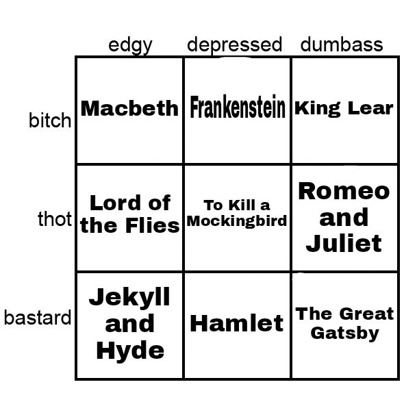 theevilsnuffleupagus: alignment chart based on which piece of high school english class literature you actually enjoyed