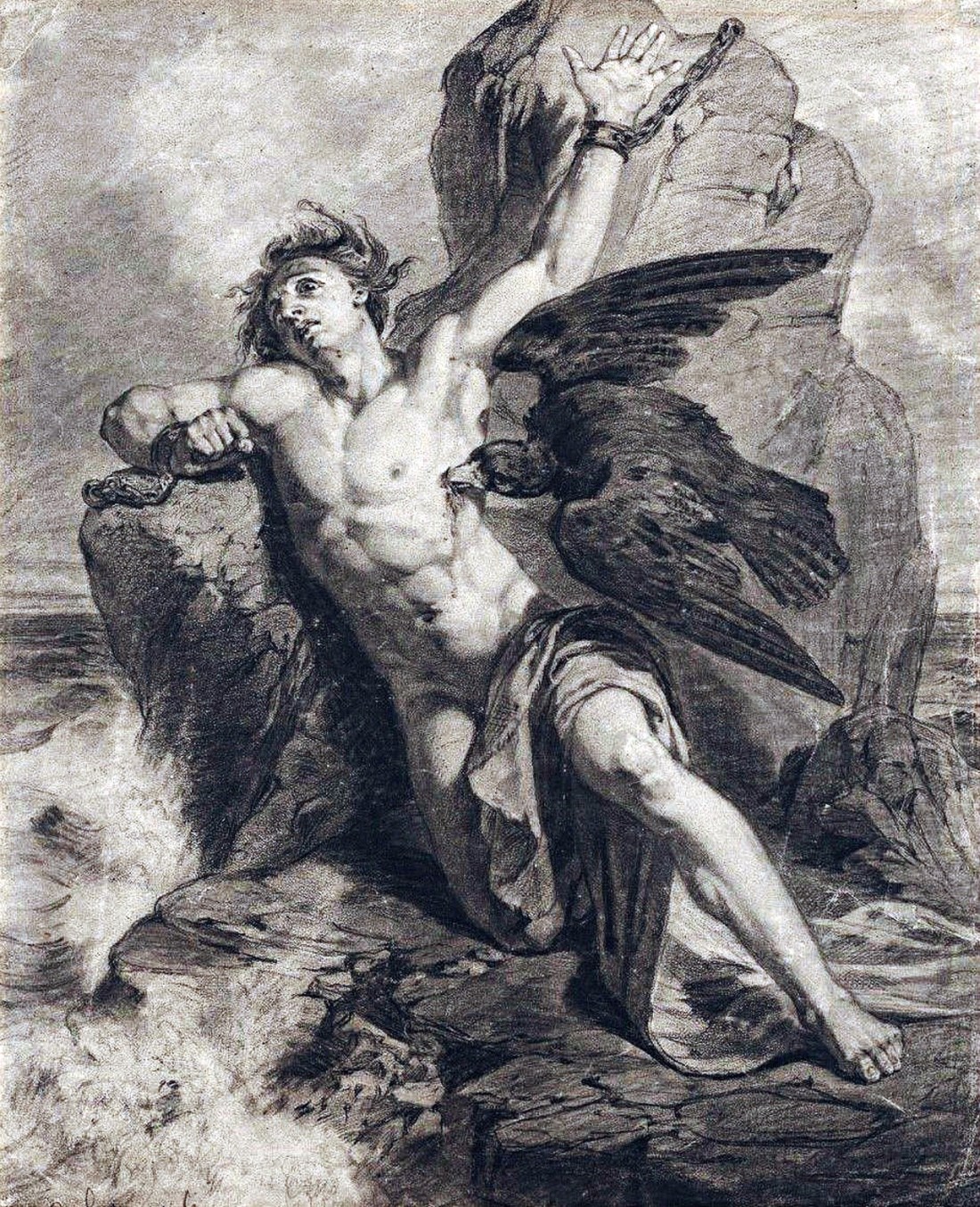 Prometheus. 19th.century. Christian Schussele. American 1824-1879. pencil and charcoal on paper. http://hadrian6.tumblr.com