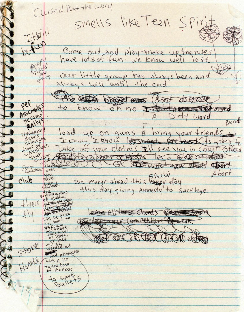 kurt cobain’s early draft of smells like teen spirit