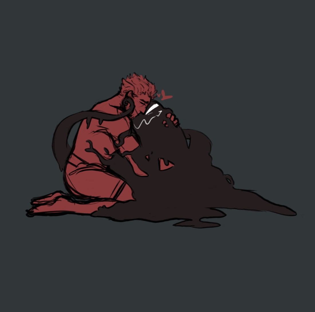 Venom, growling: The way I see it, Eddie… *slams Eddie into a wall* …We… *Eddie screams, eyes turn completely black* …Can do… *Unhinges his jaw and bites off someone’s head* …Whatever we want